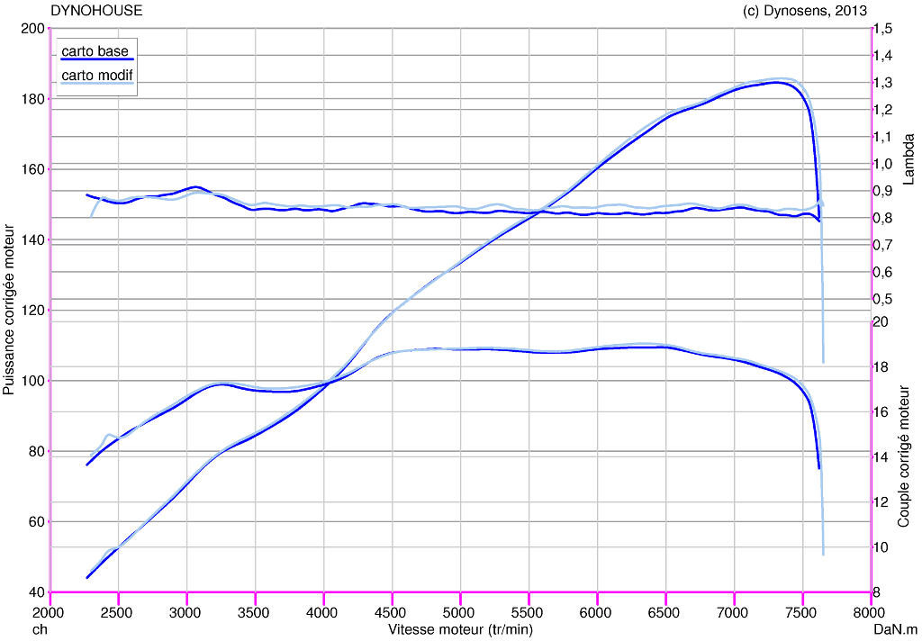 Comme le montre les courbes, la différence avant/après n'est pas flagrante, preuve de l'excellent travail réalisé par Charles ! C'est en fait sur les charges partielles que le passage au banc apportera un gain significatif.